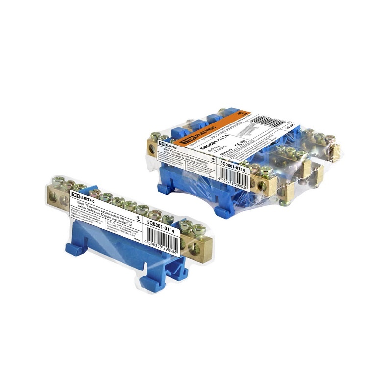 Шина "N" нулевая с изолятором на DIN-рейку 100А, 6х9 мм (12 отв.)