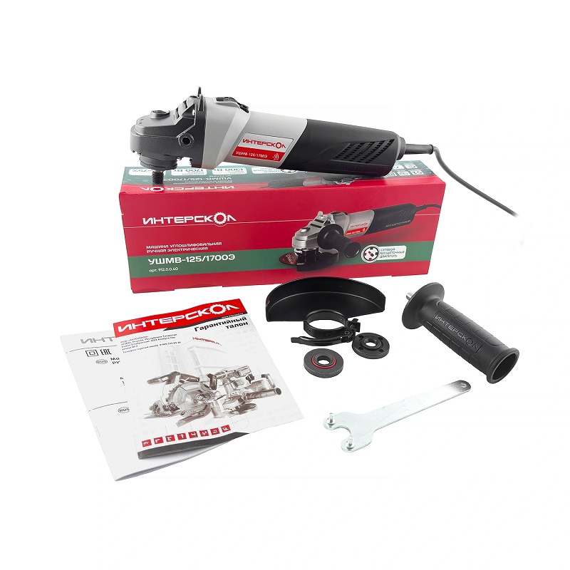 Шлифмашина угловая УШМ Интерскол 125/1700Э бесщеточная сетевая 1700 Вт, d=125 мм
