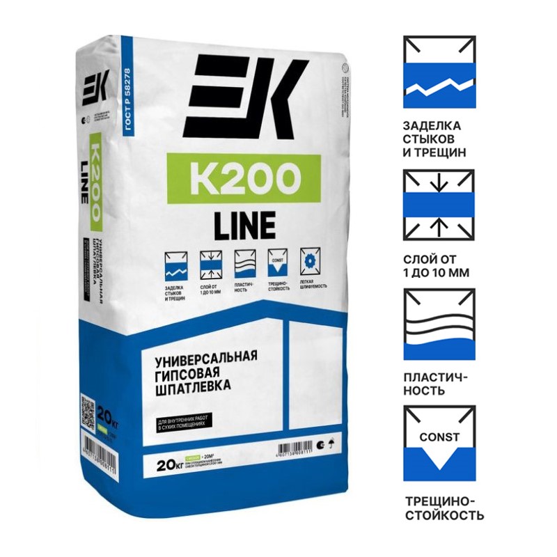 Шпаклевка гипсовая универсальная ЕК К-200 Line, 20 кг