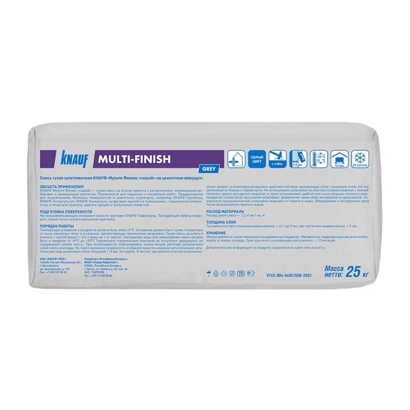 Шпаклевка цементная Knauf Multi-Finish фасадная, 25 кг