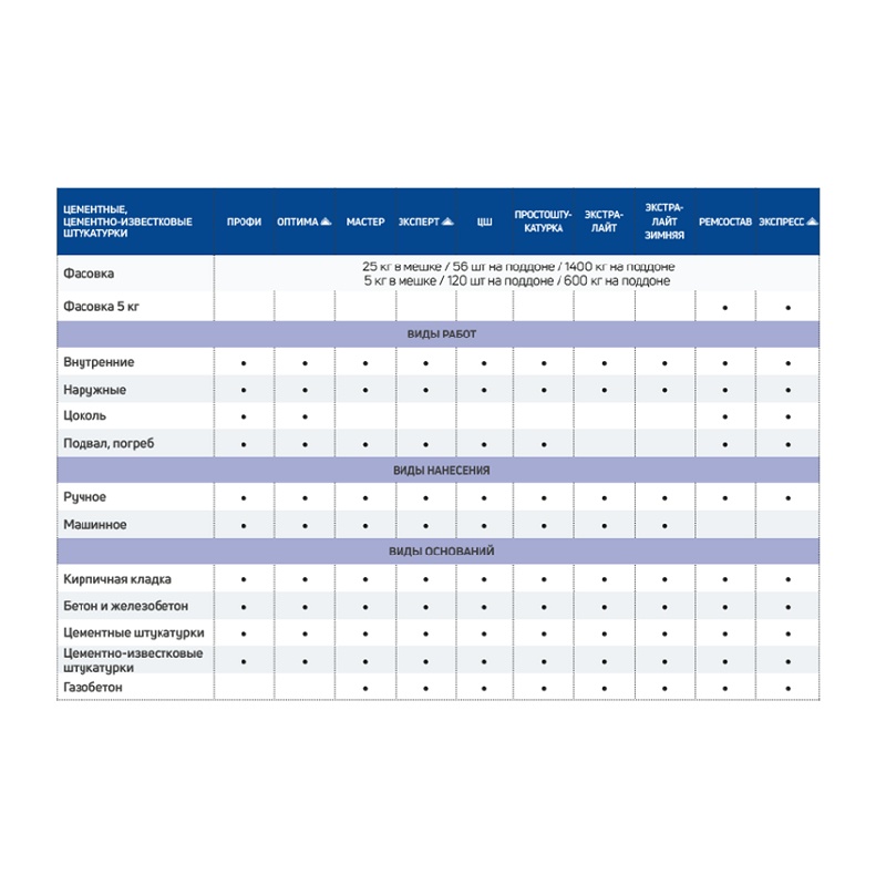 Предназначена для выравнивания стен и потолков из бетона, железобетона, кирпича, газобетона при внутренних и наружных работах. Используется в качестве накрывочного слоя по грубым цементным штукатуркам.