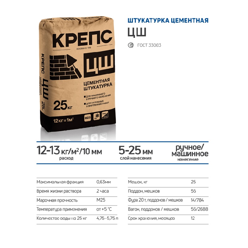 Штукатурка цементная Крепс ЦШ, 25 кг