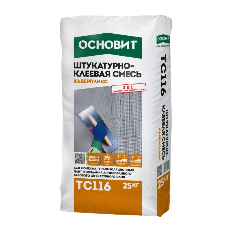 Штукатурно-клеевая смесь Основит Каверпликс ТС116, 25 кг