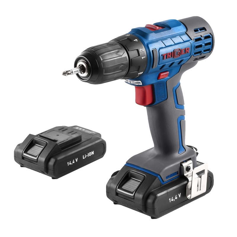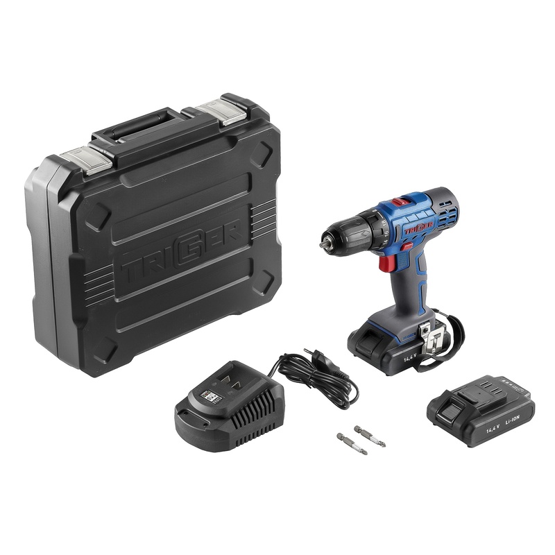 Дрель-шуруповерт Trigger 20102, 2 аккумулятора Li-ion (1,5Ач), 14,4V, 10 мм, 35 Нм, слайдер, кейс