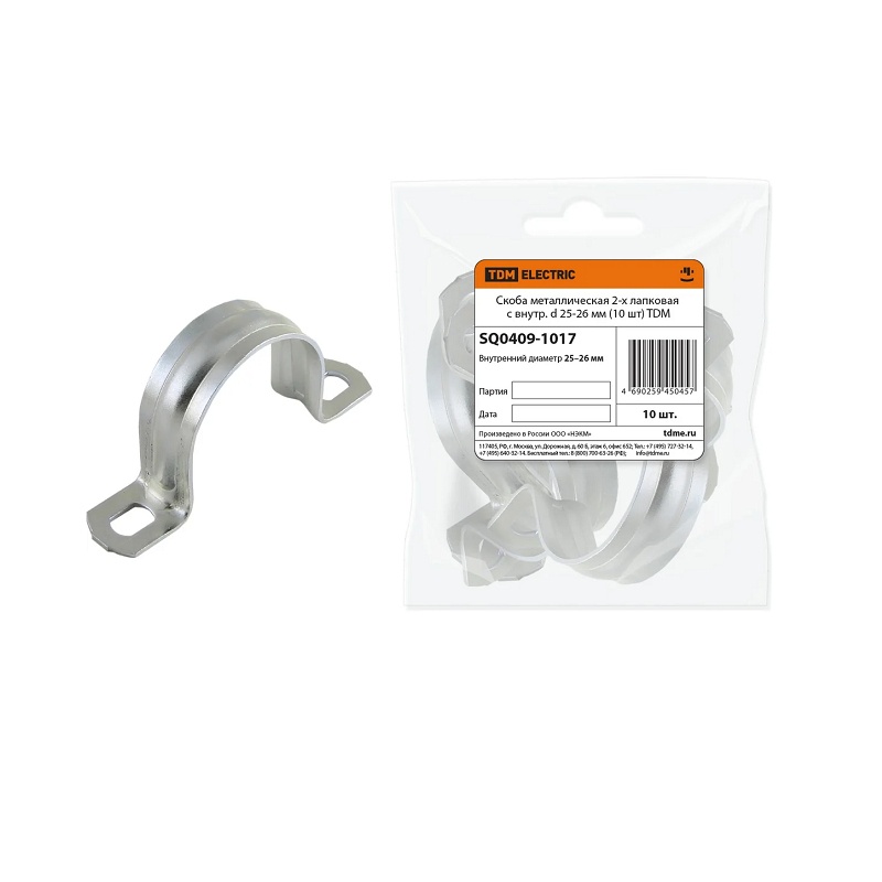 Скоба двухлапковая СМД d=25-26мм для металлорукава (уп. 10 шт.)