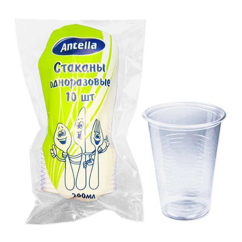 Стакан одноразовый 0,2 л, прозрачный (10 шт)