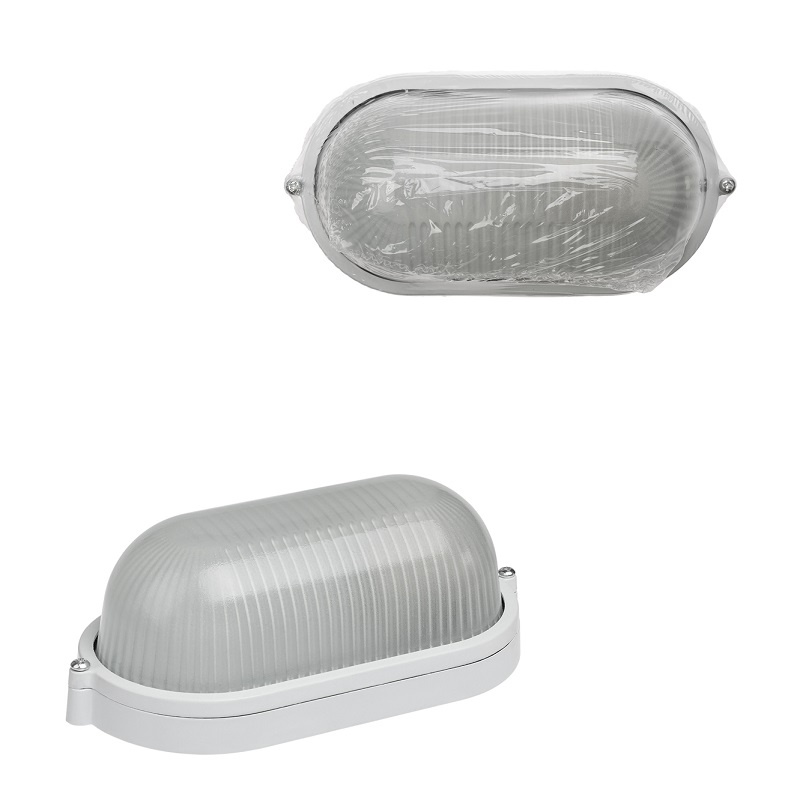 Светильник НПБ под Е27, 60 Вт, овал, белый металл+стекло, IP54