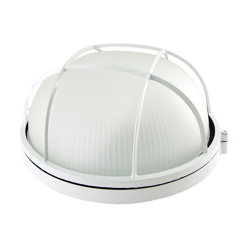 Светильник НПБ под Е27, 100 Вт, круг с решеткой, белый металл+стекло, IP54