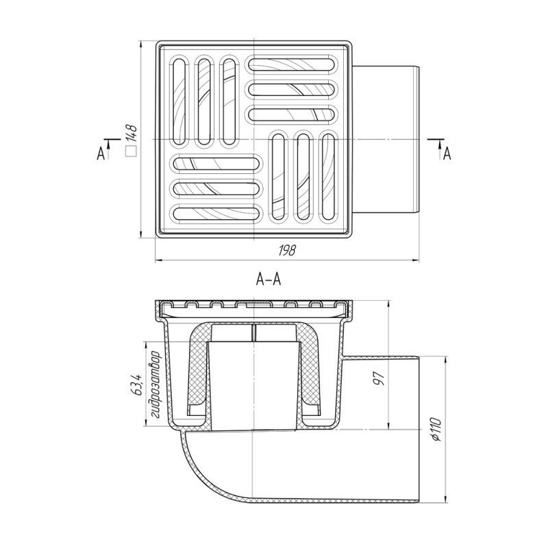 Трап Ани Пласт горизонтальный d=110 мм 150х150 мм, не регулируемый