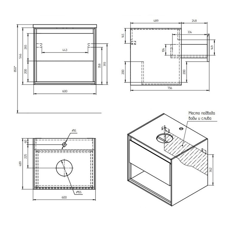 Раковина приобретается отдельно, в комплект поставки тумбы - не входит.