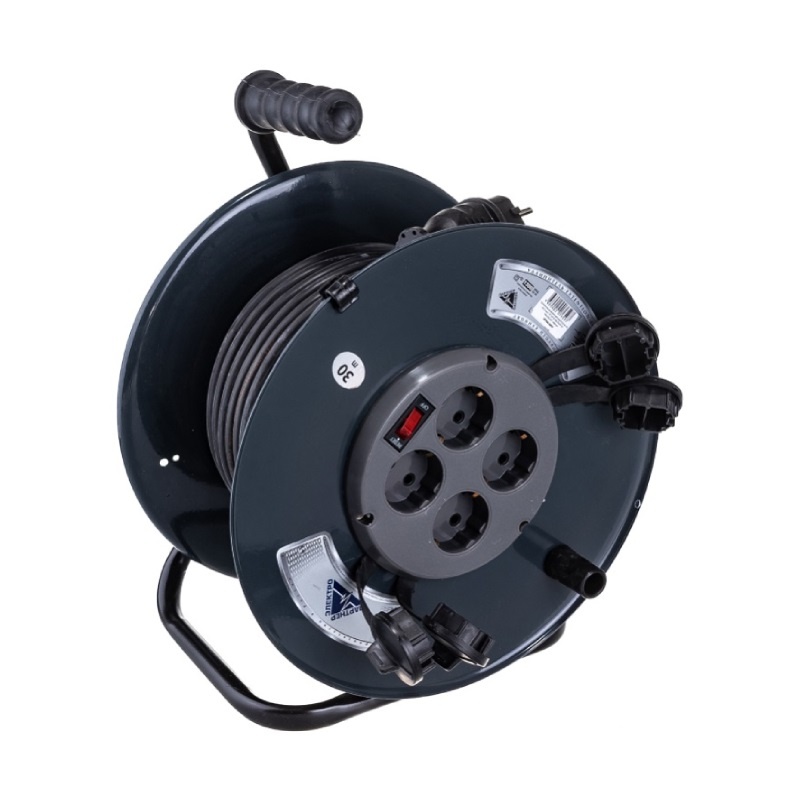 Удлинитель силовой на катушке Partner Electro 4 гнезда, КГ 3х1,5, 3500 Вт, с/з, т/з, с выкл, IP44, 30м