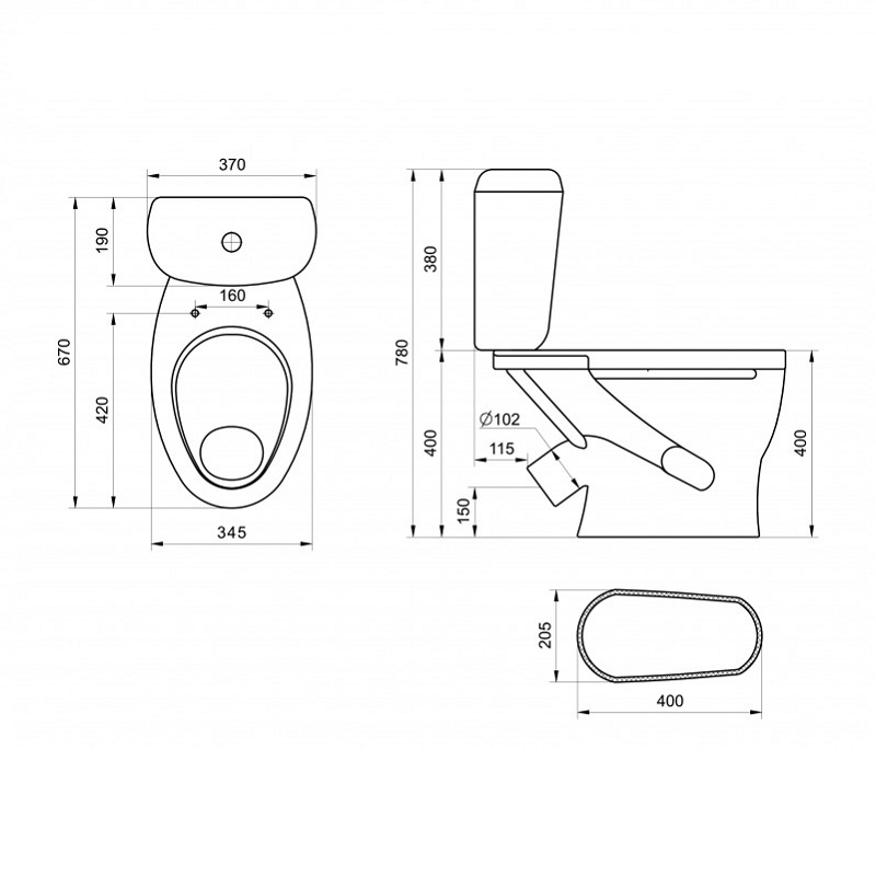 Унитаз-компакт Santeri Воротынский, косой выпуск, 670х370х780 мм