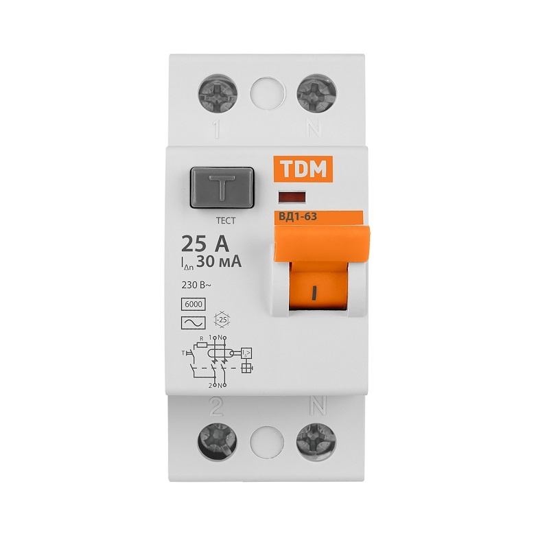 Устройство защитного отключения TDM ВД1-63, 25А, 30мА, тип АС, 2П