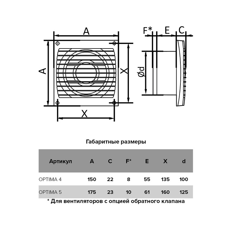 Вентилятор вытяжной Era 100 Optima 4, 80 м3/ч