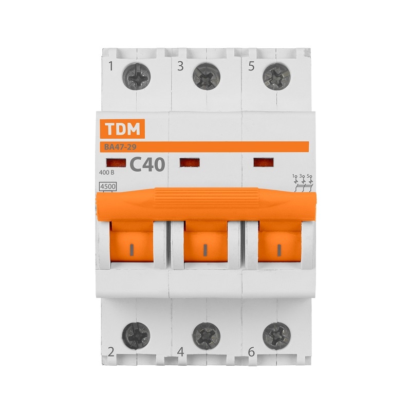 Выключатель автоматический TDM ВА 47-29, 4,5кА, С 40А, 3П