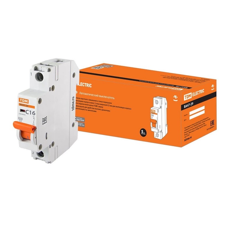 Выключатель автоматический TDM ВА 47-29, 4,5кА, С 16А, 1П