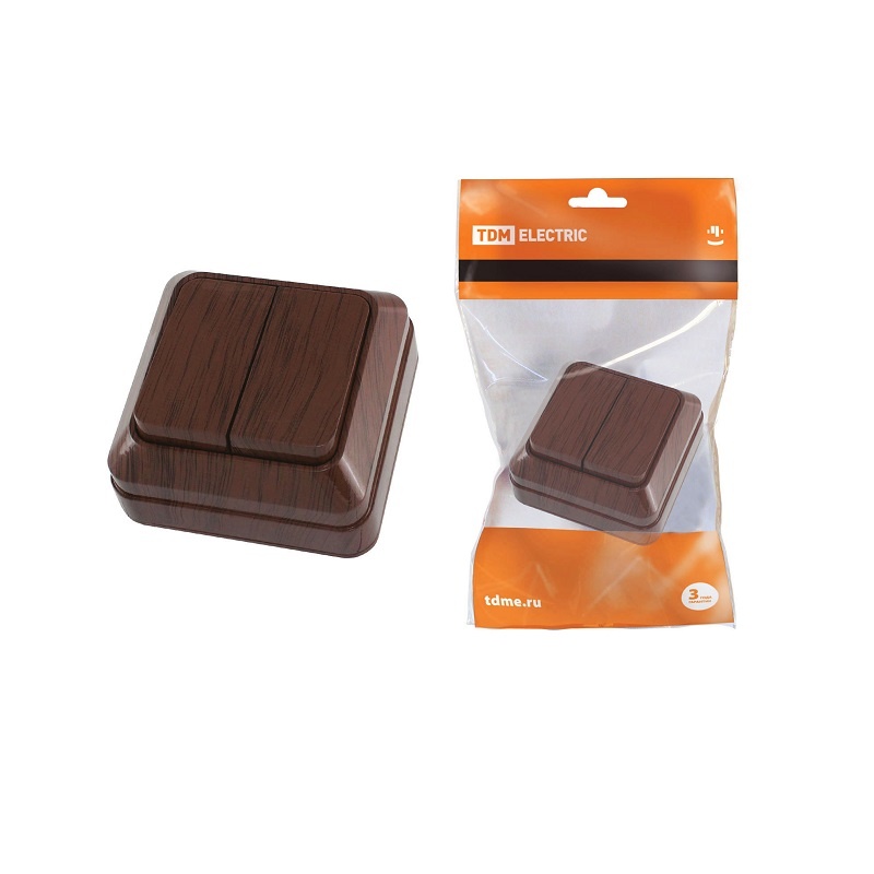 Выключатель о/у Ладога SQ1801-0028, 2 клавиши, б/инд, темное дерево