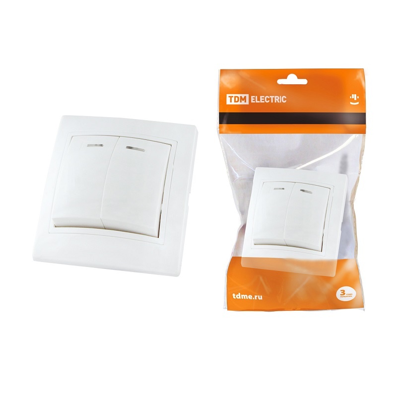 Выключатель с/у Таймыр SQ1814-0005, 2 клавиши, с/инд, белый