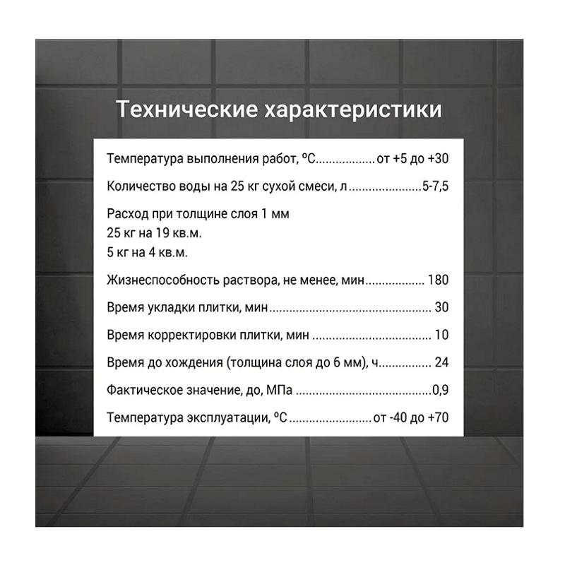 • Приклеивание плитки без сползания: Обеспечивает надежную фиксацию плитки, что исключает необходимость в повторных работах и повышает качество укладки.
