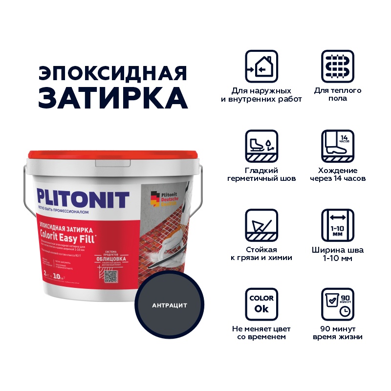 Затирка эпоксидная Plitonit Colorit Easy Fill антрацит, 2 кг